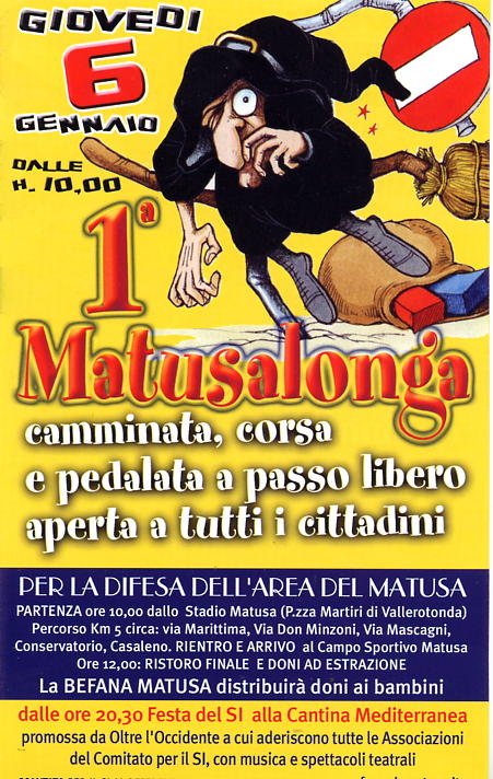 11/01/2005 Referendum flop 11/01/2005 Il project ha vinto, ora parco del Cosa 12/01/2005 Referendum: oltre 7500 cittadini sono contrari al Project financing del Matusa. Questo è l’unico dato concreto su cui riflettere. 23/02/2005 "> Matusa: i Verdi invocano Marrazzo 15/05/2005 la CDL romana si svende l'Italia per comprare un pugno di voti 14/09/2005 La cittò deve disarmarsi